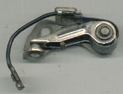 Na gornjoj skici, prikazan je razvodnik paljenja sa pločom na kojoj su postavljene platine i kondenzator. Vidimo, da je kod ugradnje pokretnog dijela platina (čekića), vođeno računa o izolacijama. Plus žica, koja dolazi sa minus terminala bobine, spojena je na kondenzator i oprugu čekića, koja se preko izolatora oslanja na nakovanj. Nakovanj je direktno pričvršćen vijkom za ploču, koja je, kako smo već rekli, minus sama po sebi. Stoga, spajanjem kontakata platina, struja teče preko kontakata na masu (-) i strujni krug je zatvoren. Kada se kontakti razdvoje, strujni krug je prekinut. Upravo iz toga razloga, postoje izolatori, kako se strujni krug ne bi zatvorio u slučaju spajanja čekića sa masom na bilo kojem dijelu. Nos čekića kojega podižu brjegovi, također je od plastike. Možemo zamijetiti, kako na nakovnju postoji vijak za podešavanje. Ovim vijkom, podešava se razmak između platinskih prekidača u otvorenoj poziciji. Razmak se mjeri onoga momenta, kada je nos čekića na samom vrhu brijega. Ovaj razmak , obično je oko 0.40 mm. Vrlo je bitno da ovaj razmak bude podešen po specifikacijama, poradi potrebnog vremena za zatvaranja strujnog kruga za indukciju, kao i vremena za pražnjenje induciranog napona. Na desnoj fotografiji, vidimo jedan od najučestalijih tipova platinskog prekidača.