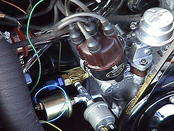 Razvodnik paljenja U prethodnom tekstu, objašnjeno je kako dolazi do iskre na svjećici i zapaljenja smjese na jedno cilindričnom benzinskom motoru. Na isti način, dolazi do zapaljenja smjese i na više cilindričnim motorima. Kako bi se iskra dovela na svjećice svih cilindara motora, koristi se distributor ili razvodnik paljenja. Razvodnik paljenja, distribuirati će iskru na svaki cilindar motora u točno određeno vrijeme. On će također korigirati kut paljenja, obzirom na broj okretaja motora. Na donjim fotografijama, prikazan je tipičan smještaj razvodnika paljenja na benzinskim motorima. Na lijevoj fotografiji, razvodnik paljenja, smješten je na bloku motora i pokretan bregastom osovinom (kod motora sa bregastom osovinom u bloku motora) ili zasebnom osovinom pokretanom zupčastim remenom (kod motora sa bregastom osovinom na glavi motora - OHC motori). Na desnoj fotografiji, razvodnik paljenja, postavljen je direktno na bregastu osovinu na glavi motora.