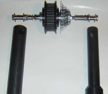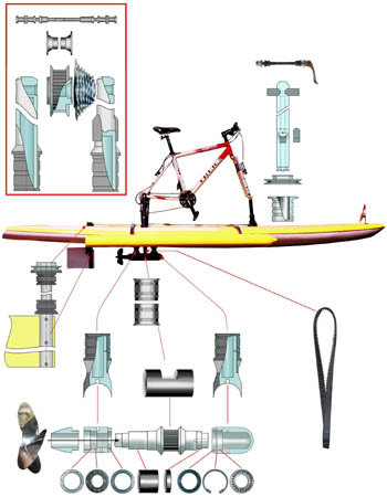 board, the transmission assembly is inserted in to the cups with belt