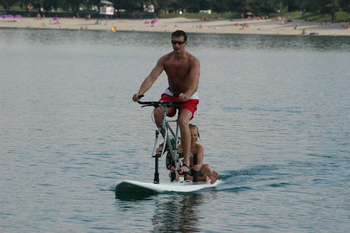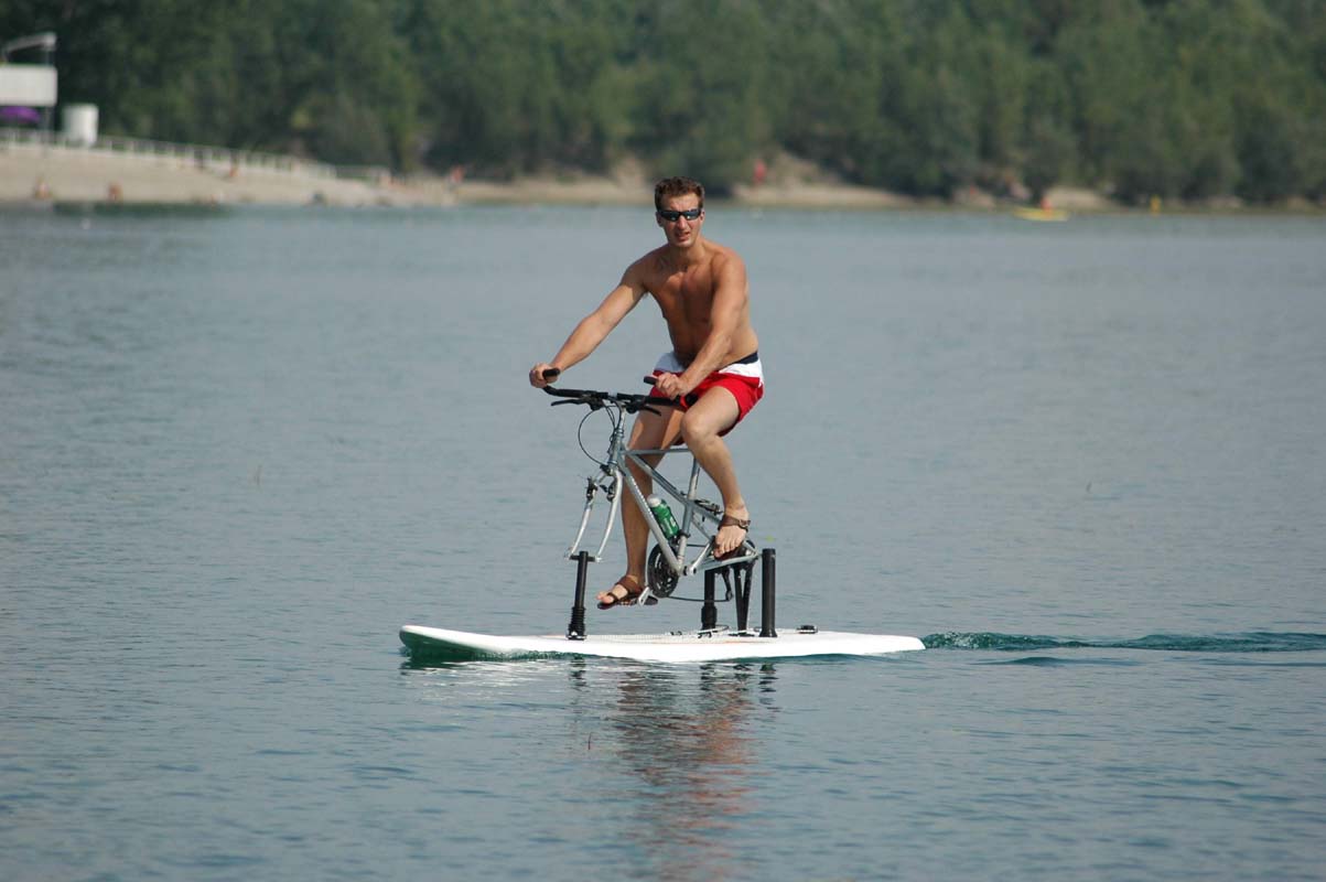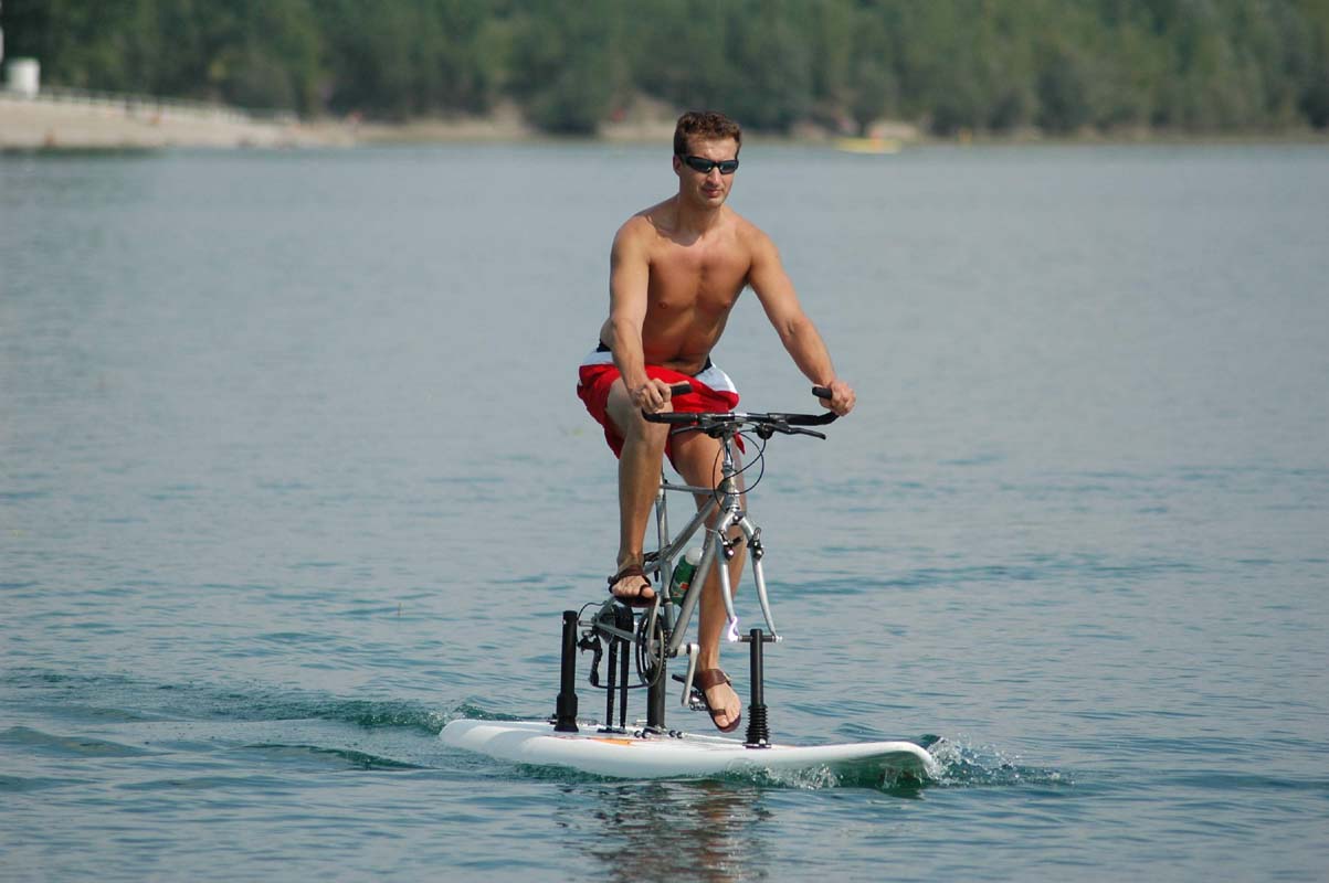 ready for water bicycle riding or wind surfing.