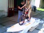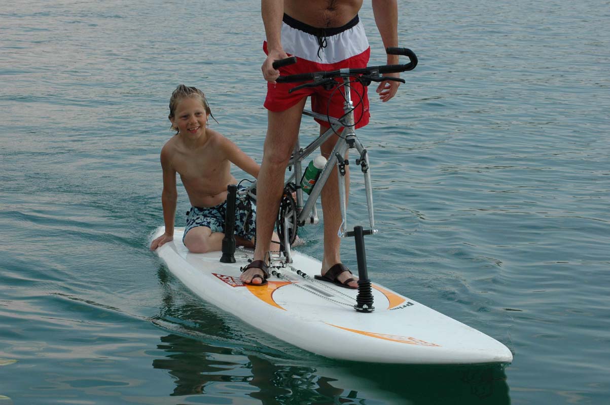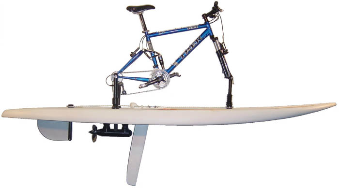 Conversion kit on the board Wind surfing board, ready for water cycling